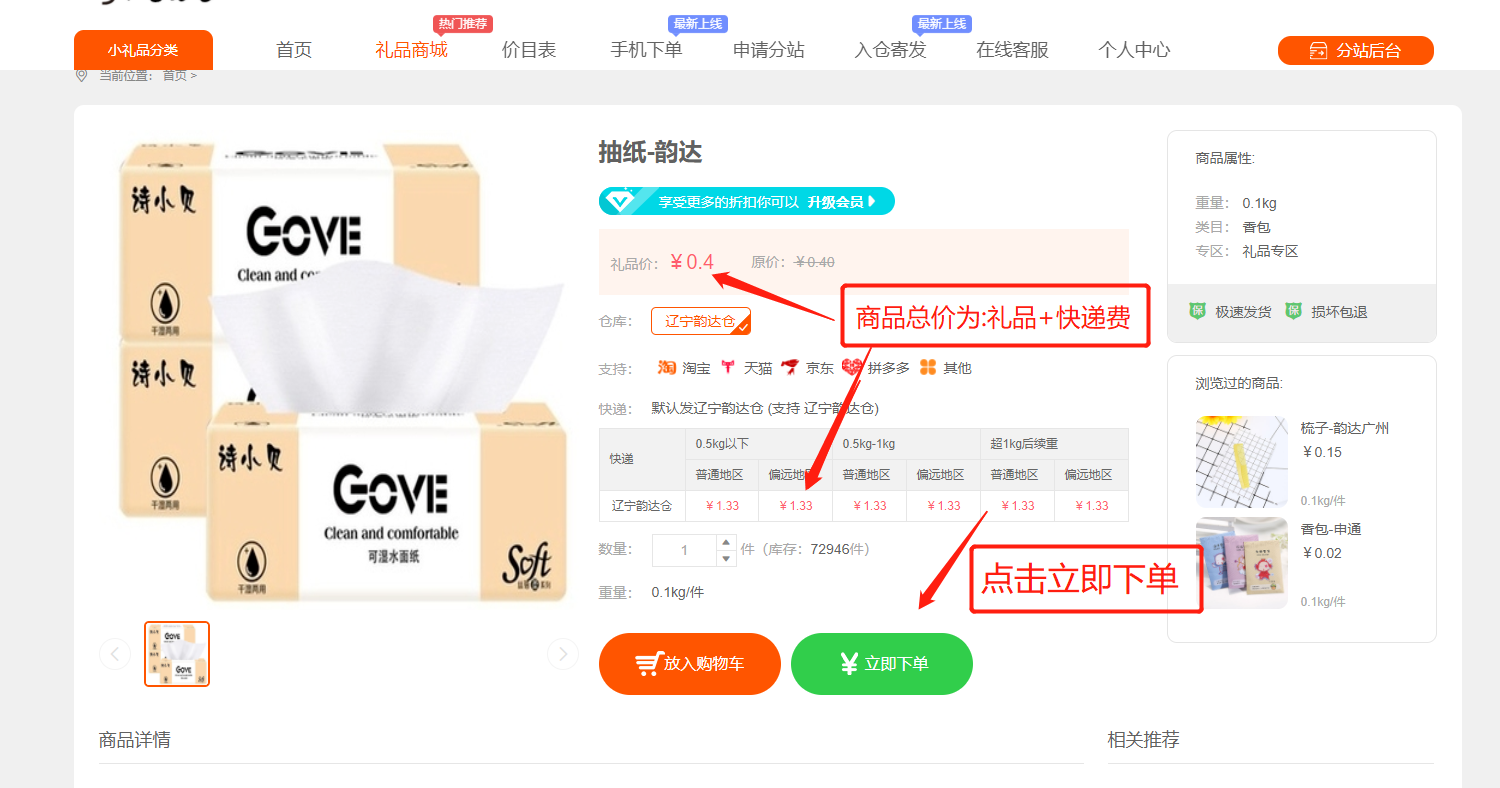 1、淘宝订单直接进入已卖出宝贝<<详情<<复制地址,粘贴到网站输入框,提交地址,选择礼品,支付即可。