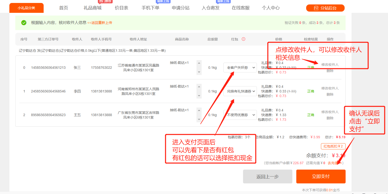 2、拼多多地址可以直接在拼多多卖家中心<<已卖出商品处复制地址<<粘贴到网站输入框<<提交地址,选择礼品<<确认支付即可。注意地址需要显示全后再复制,否则无法下单成功。